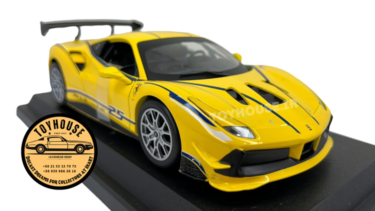 ماکت Ferrari 488 Challenge در مقیاس 1:24 از برند معتبر Bburago، انتخابی عالی برای کلکسیونرها و علاقهمندان به خودروهای اسپرت و مسابقهای است. این ماکت با بدنه فلزی دایکست و جزئیات پلاستیکی دقیق ساخته شده و طراحی آن کاملاً وفادار به نمونه اصلی فراری 488 چلنج میباشد.