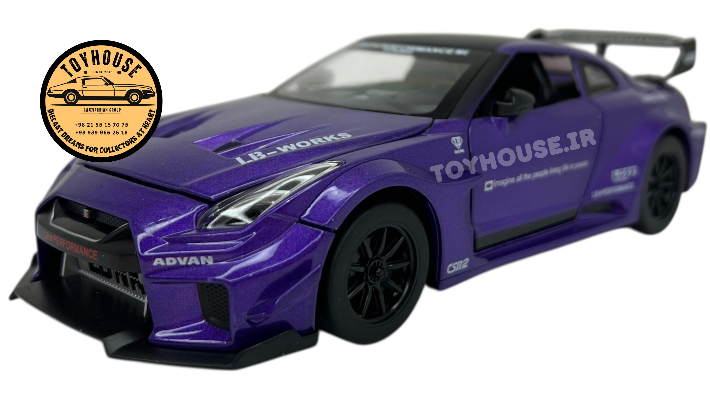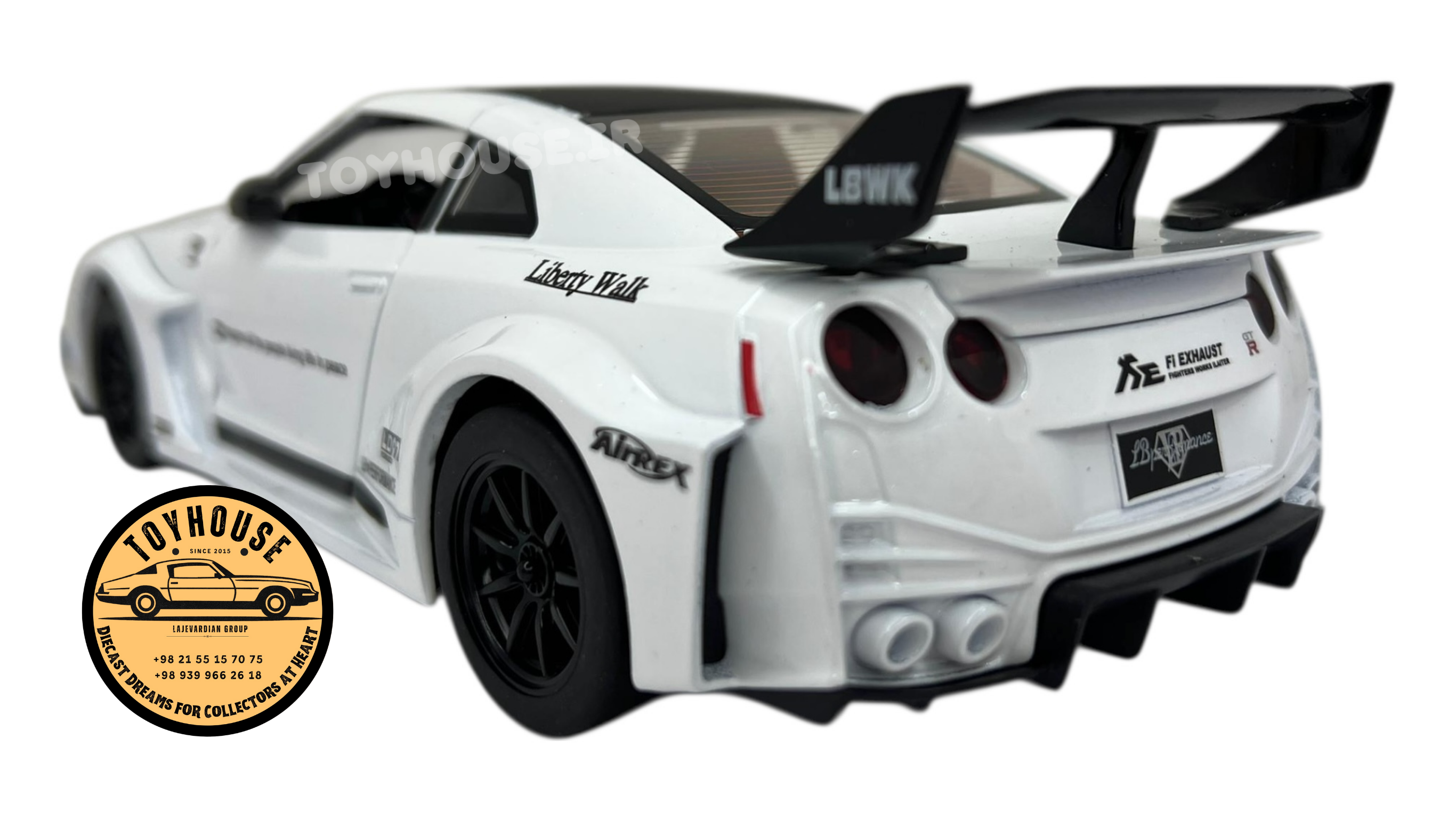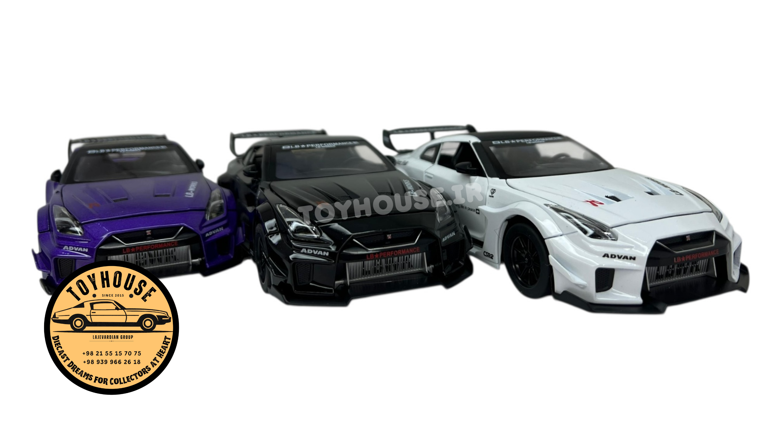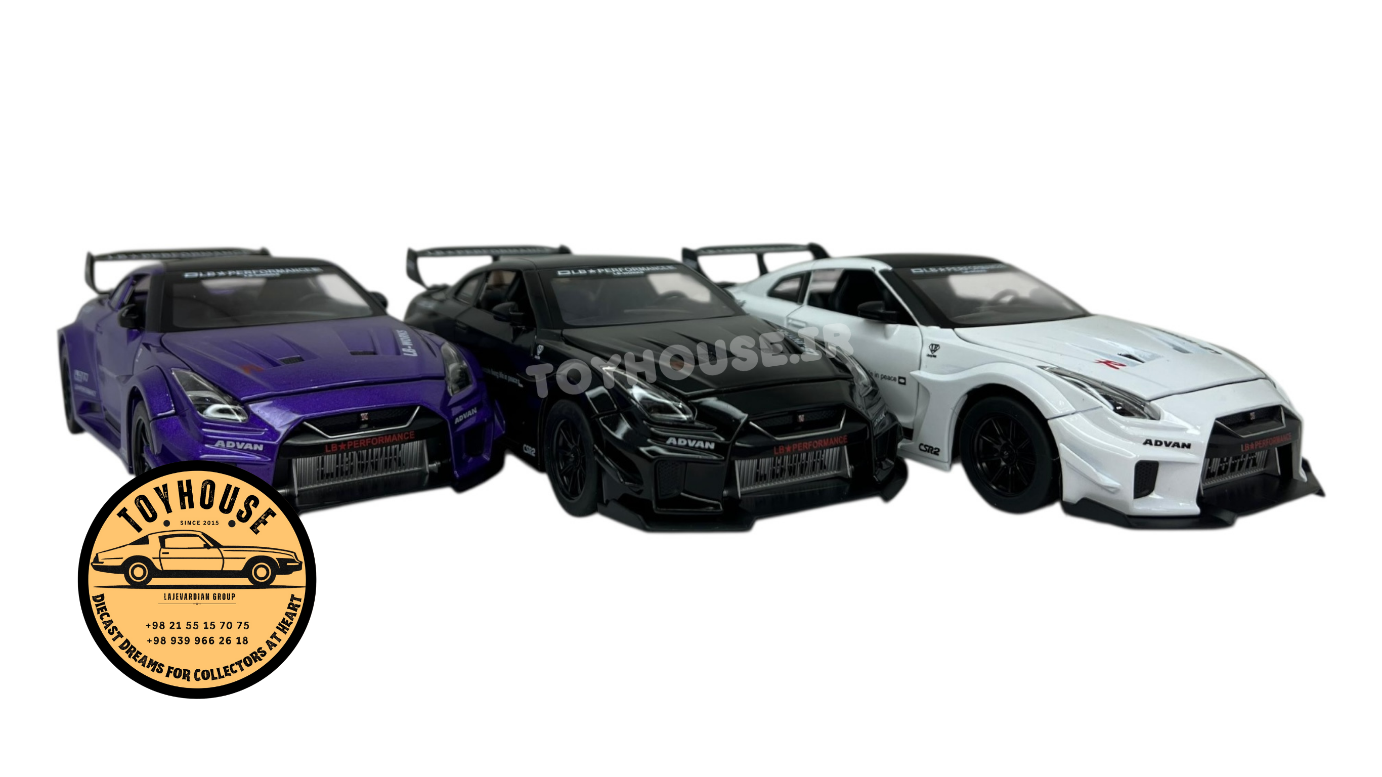 ماکت فلزی نیسان GT-R R35 Liberty Walk مقیاس: 1:24 جنس بدنه: فلزی دایکست + قطعات پلاستیکی موزیکال چراغدار جلو آینههای تاشو درب باک بازشو سیستم عقبکش (Pull Back) رنگبندی: سفید – مشکی – بنفش وضعیت بستهبندی: بدون جعبه کیفیت ساخت: +A رده سنی: مناسب ۳+