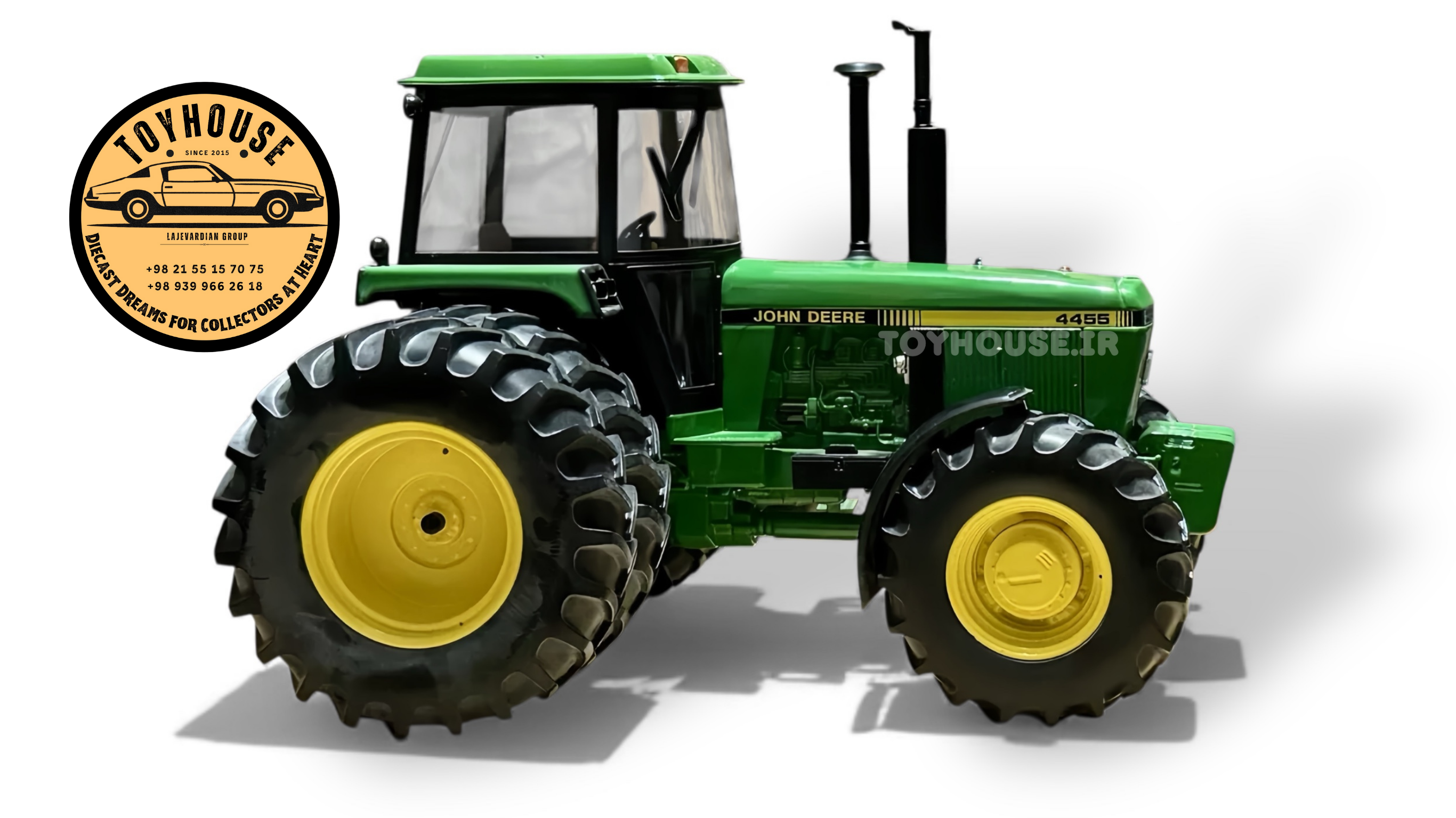 ماکت تراکتور John Deere 4455 نسخه Collector Edition 25th Anniversary یکی از ارزشمندترین و کمیابترین مدلهای تولیدشده توسط برند ERTL است. این محصول با مقیاس ۱:۱۶ و بدنه کاملاً فلزی (Die-Cast) ساخته شده و جزو مدلهای سنگین، باکیفیت و کلکسیونی محسوب میشود.